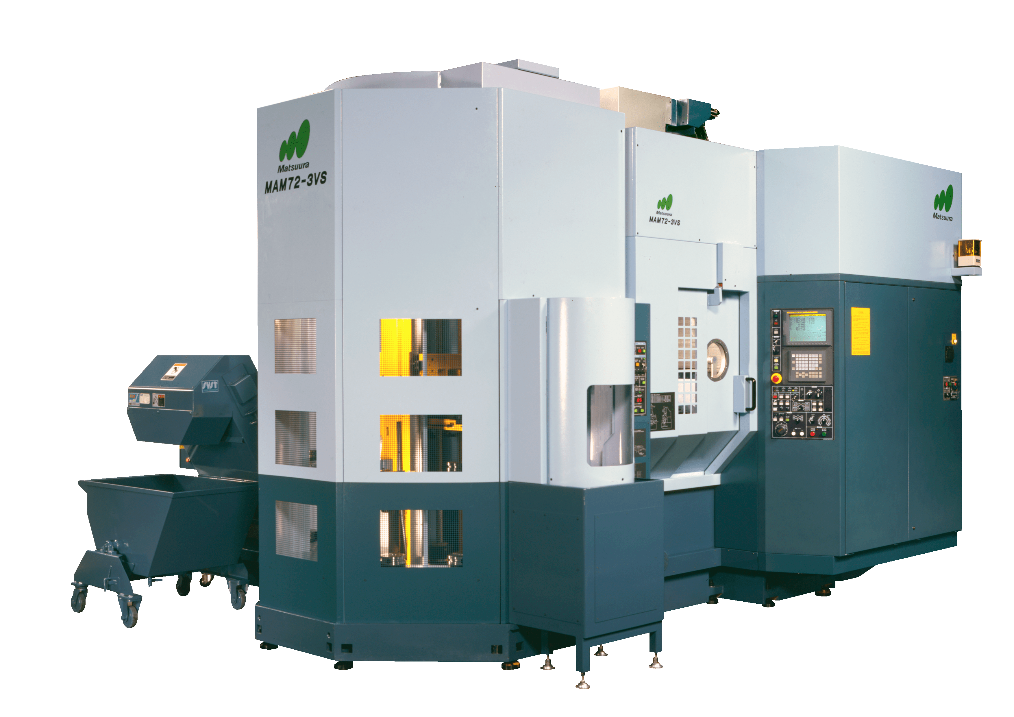In 1991, predicting the need for reducing working hours, Matsuura developed the 5-axis MAM72 series capable of unmanned operation for 72 consecutive hours and ushering in and defining a new age of unmanned palletized and fully automated pallet pool CNC machining production.